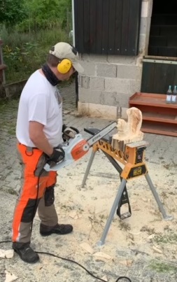 Ich stelle Holz, sowie Elektrokettensägen zur Verfügung. Nach einer Sicherheitseinweisung am Freitag Abend legen wir am Samstag morgen los. Ich zeige verschiedene Techniken und dann schnitzen wir eine Figur. Je nach Erfahrung einfach oder etwas anspruchsvoller.